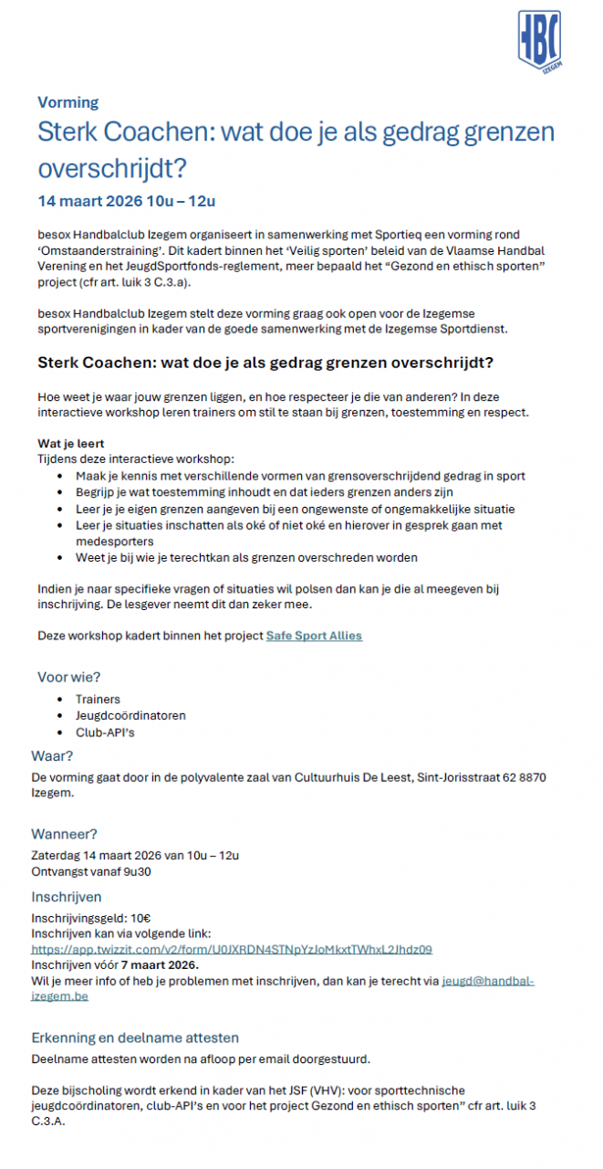 Wie kan helpen kan zich aanmelden via twizzit of mailen naar communicatie@handbal-izegem.be